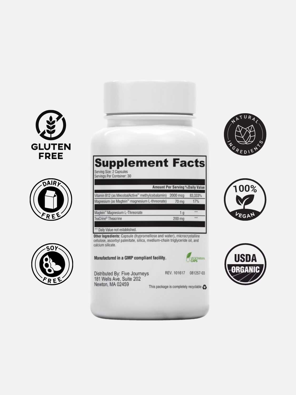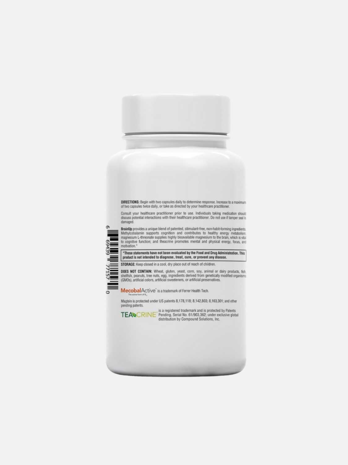 BrainUp is a unique blend of patented, stimulant-free ingredients. It contains methylcobalamin to support cognitive function, and magnesium L-theronate, which provides highly bioavailable magnesium. Theacrine is also included to support mental and physical energy, focus, and motivation. This product is not intended to diagnose, treat, cure, or prevent any disease.