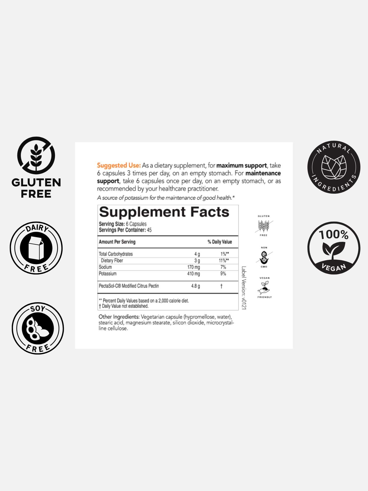 PectaSol Modified Citrus Pectin is a supplement formulated to support overall wellness. The product is designed to support a healthy inflammatory response, immune function, cardiovascular health, and healthy aging. The patented formula is purified to achieve a low molecular weight to maximize absorption into the bloodstream.