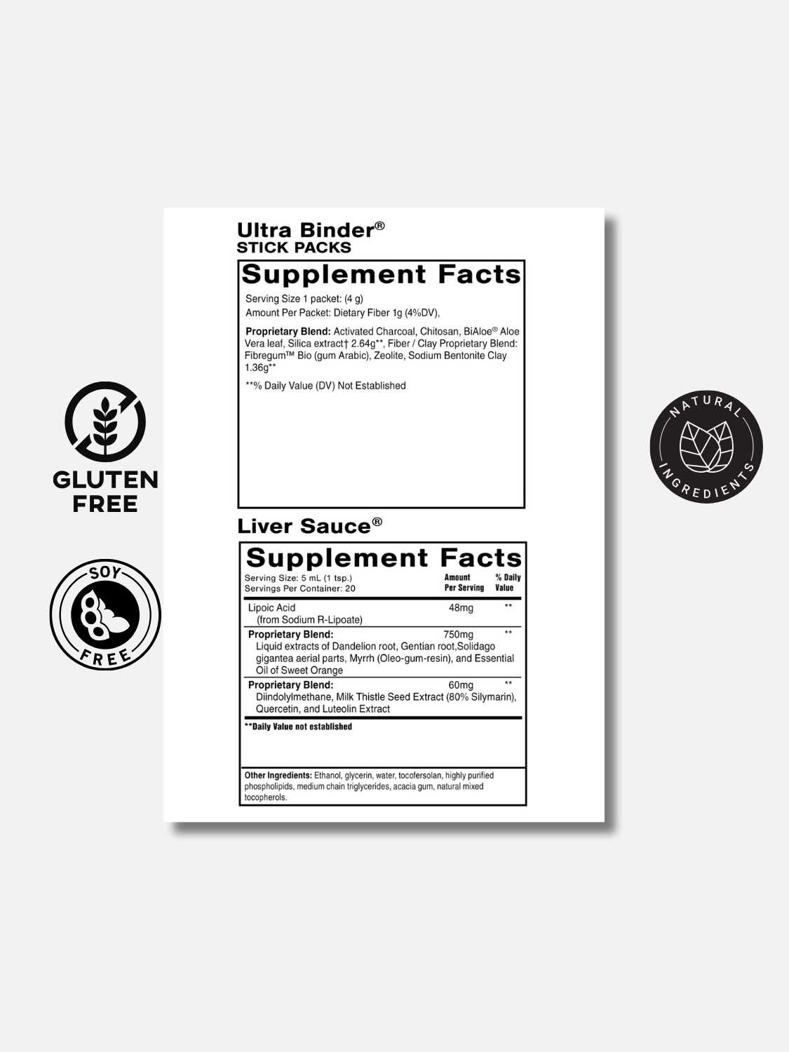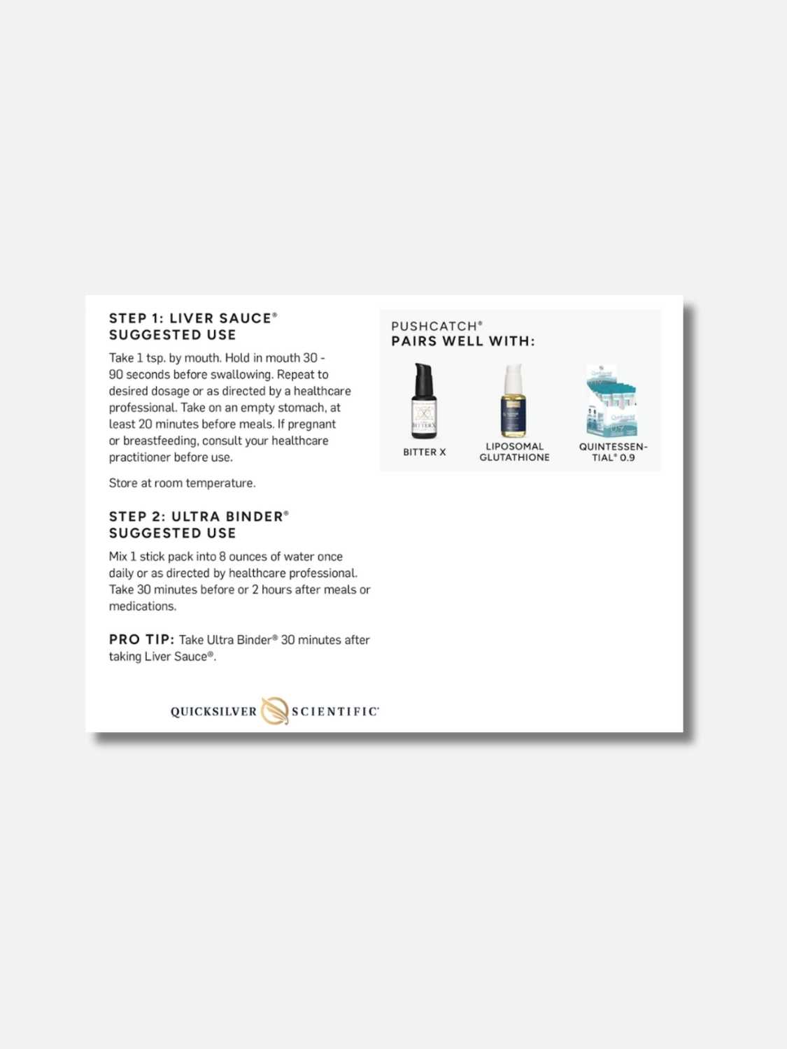 The PushCatch® LiverDetox is a two-step cleansing protocol designed to support the liver. This product is formulated to help support the elimination of toxins. The formulation includes a liposomal blend of bitters to "push" toxins to the gut, where natural binders "catch" the toxins so that they can be safely eliminated by the body. The PushCatch® contains a broad-spectrum blend of binders that are blended with prebiotic fibers.
