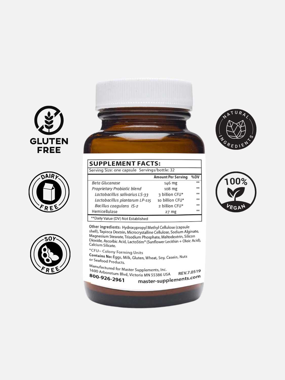 | Other ingredients: Cellulose, Sodium Alginate, HPMC (capsule), Sodium Phosphate, Silica, Ascorbic Acid, Sunflower Lecithin, Oleic Acid (LactoStim, patent pending), Magnesium Stearate (vegetable source). |